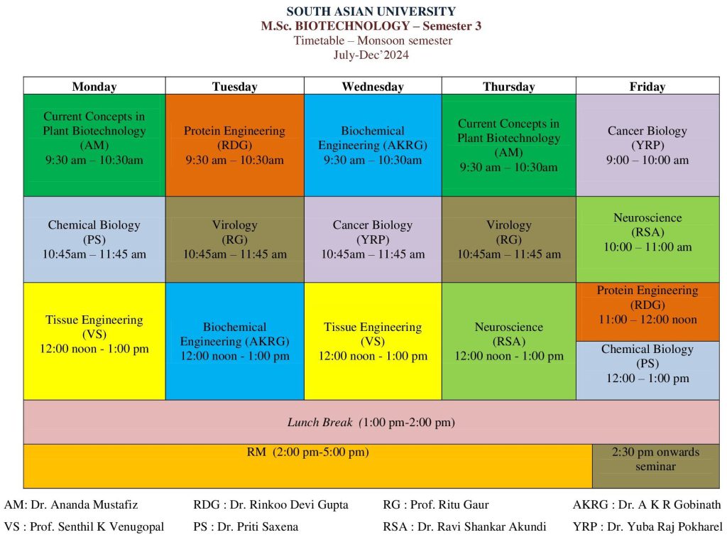 Timetable FACULTY OF LEGAL STUDIES Ph.D. Second Semester 2024 Room No. LS404 TIMETABLE 9 to 11 am 11 am to 1 pm 1 to 2 pm 2 to 4 pm Monday Research Methodology and Legal Writing (SJ/SRG) (Compulsory) Tuesday Research Methodology and Legal Writing (SJ/SRG) (Compulsory) Wednesday Break Thursday Friday Stellina Jolly -SJ, Sai Ramani Garimella -SRG Classes are scheduled to commence on 11 January 2024. Contactable Hours of the Faculty Dr Stellina Jolly Mon, Wed, Fri 4 to 5:30 pm Dr Sai Ramani Garimella Mon, Wed, Fri 4 to 5:30 pm
